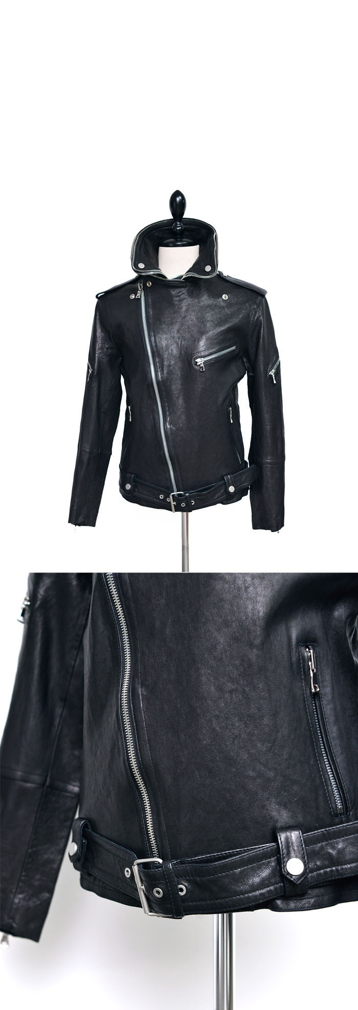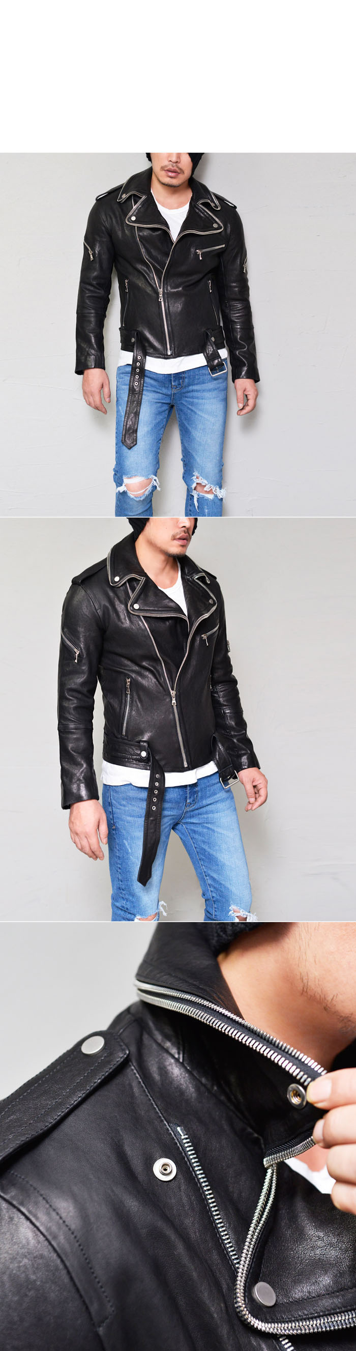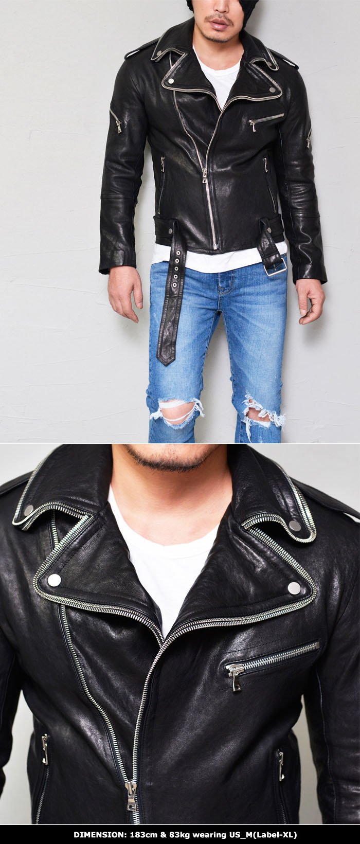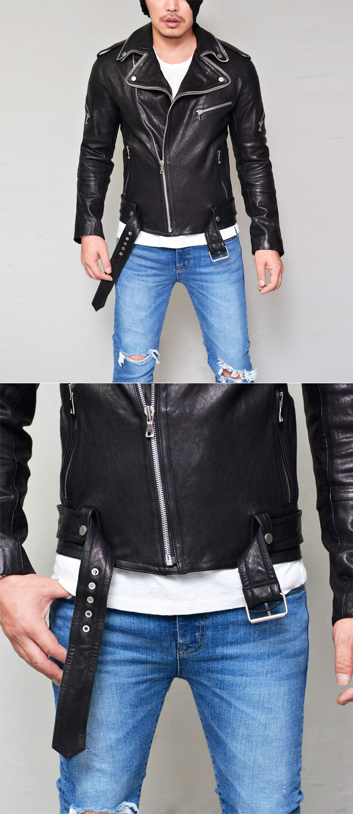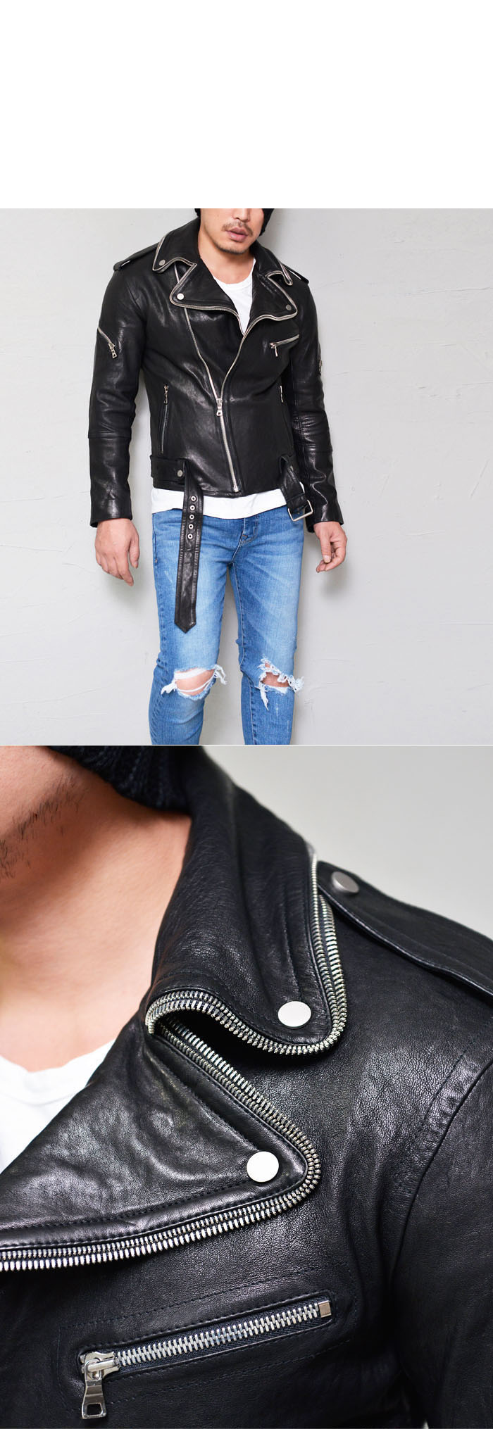 DOUBLE ZIP COLLAR BELTED LAMBSKIN RIDER-LEATHER 114 BY GUYLOOK