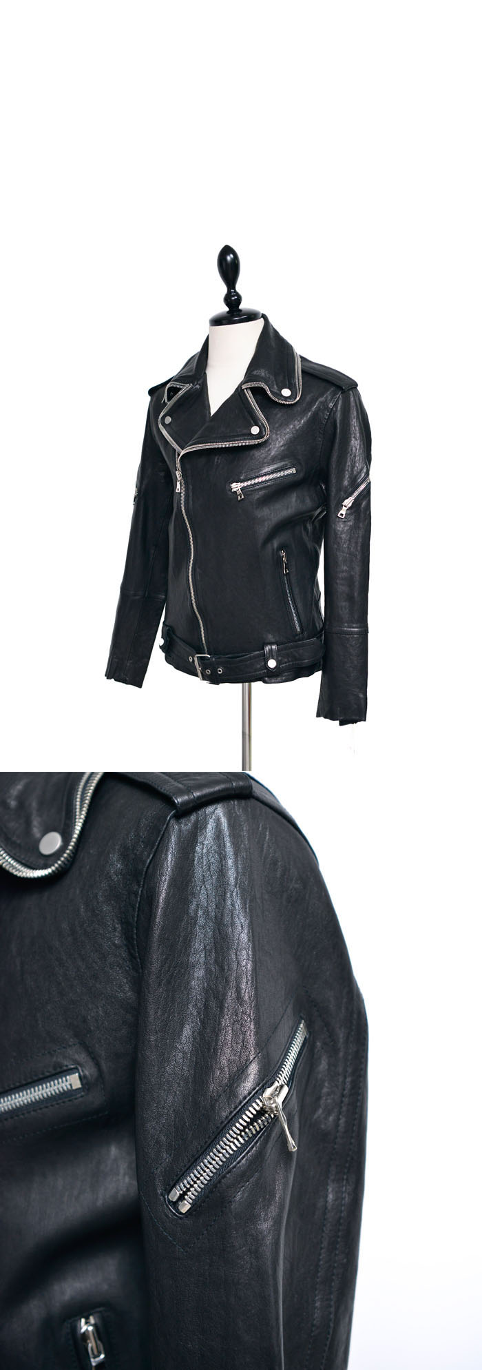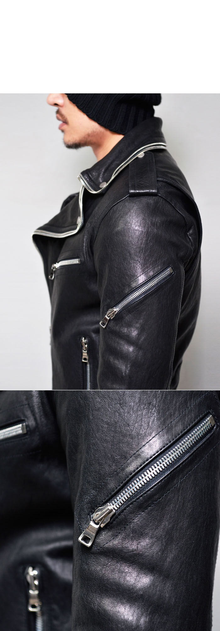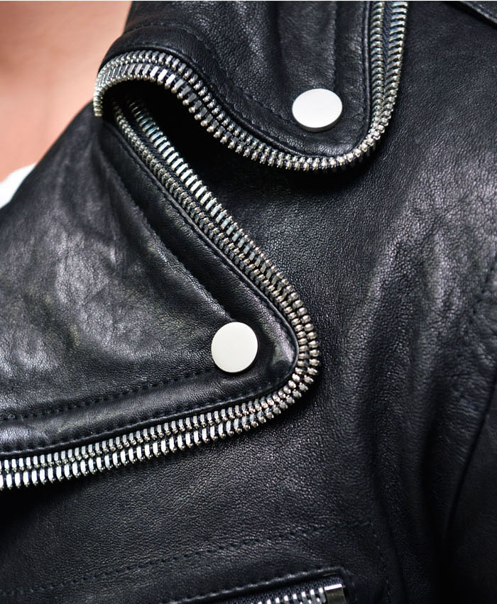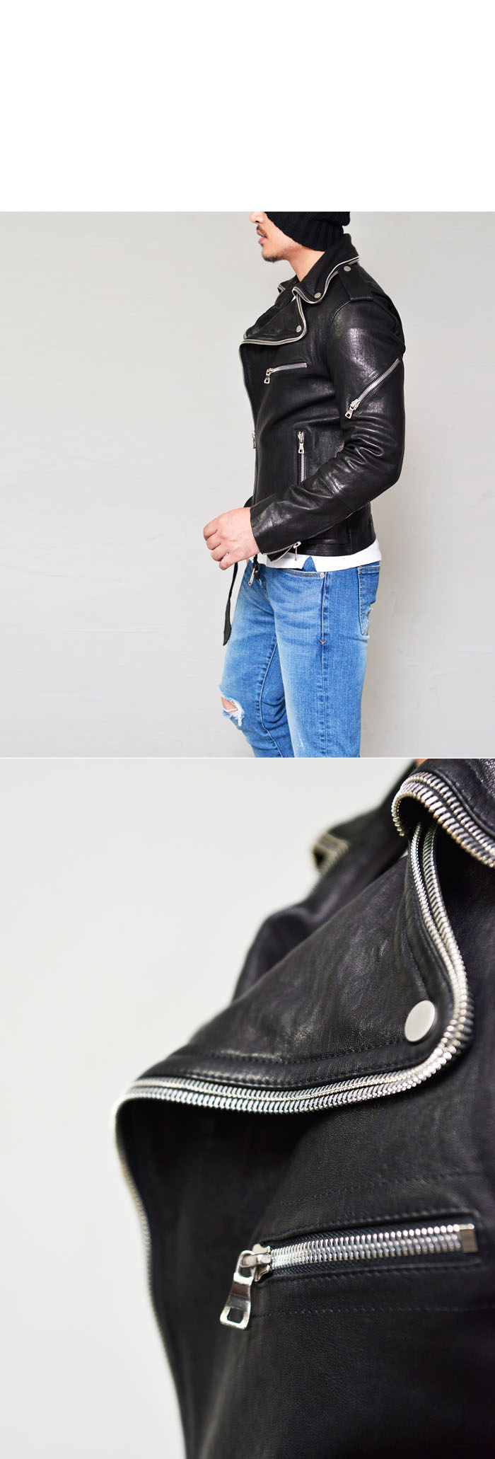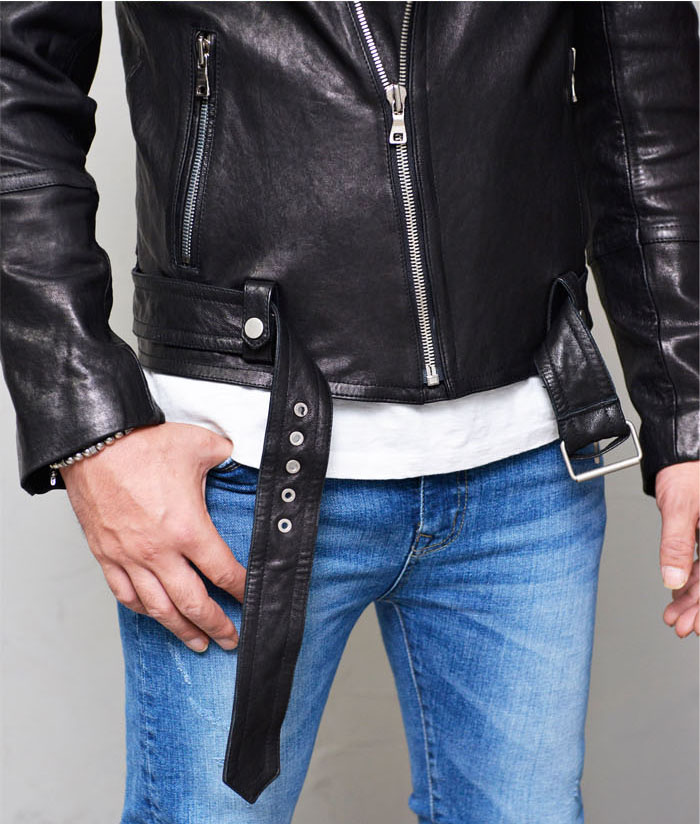 DOUBLE ZIP COLLAR BELTED LAMBSKIN RIDER-LEATHER 114 BY GUYLOOK