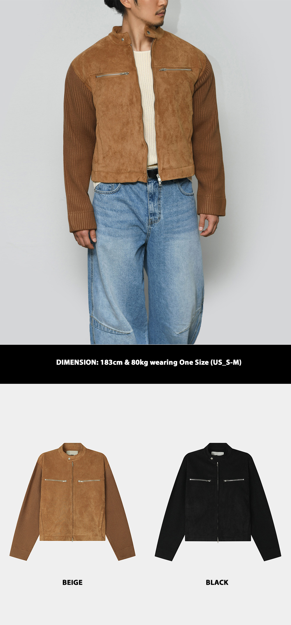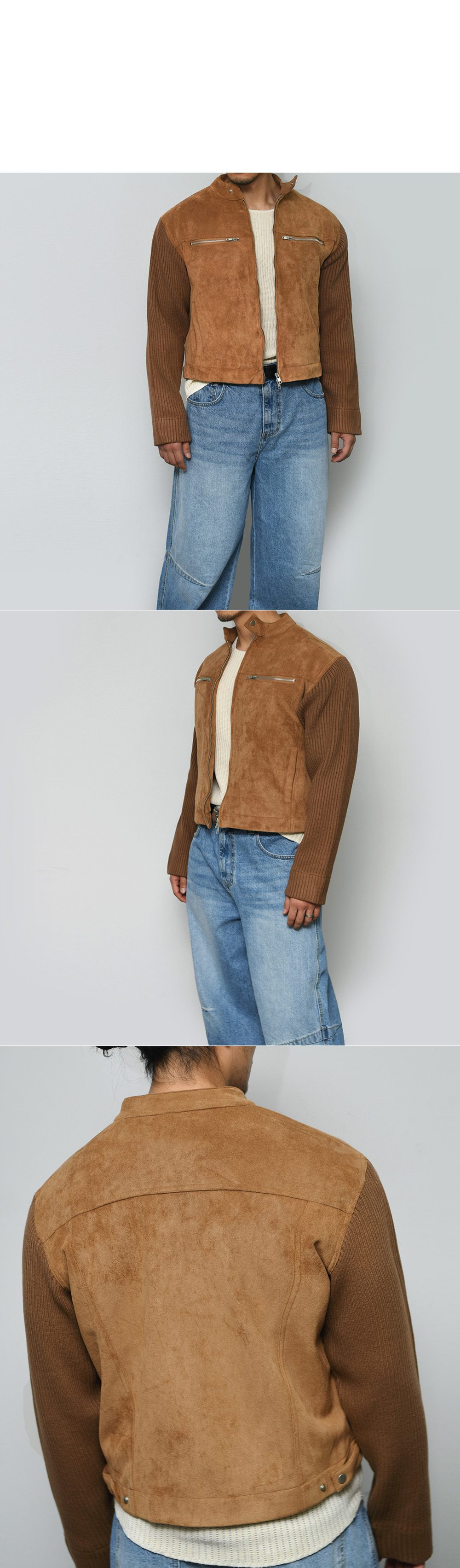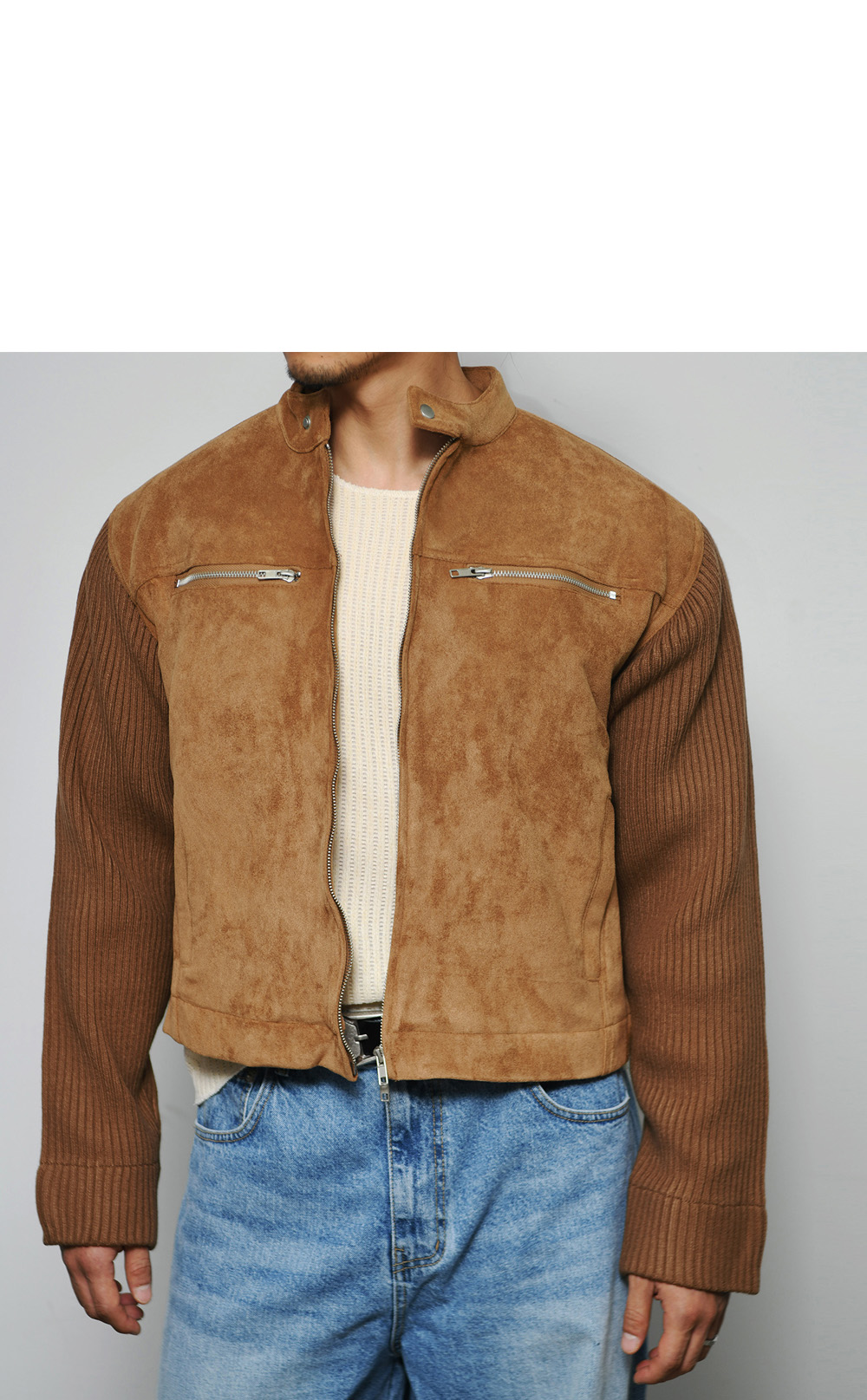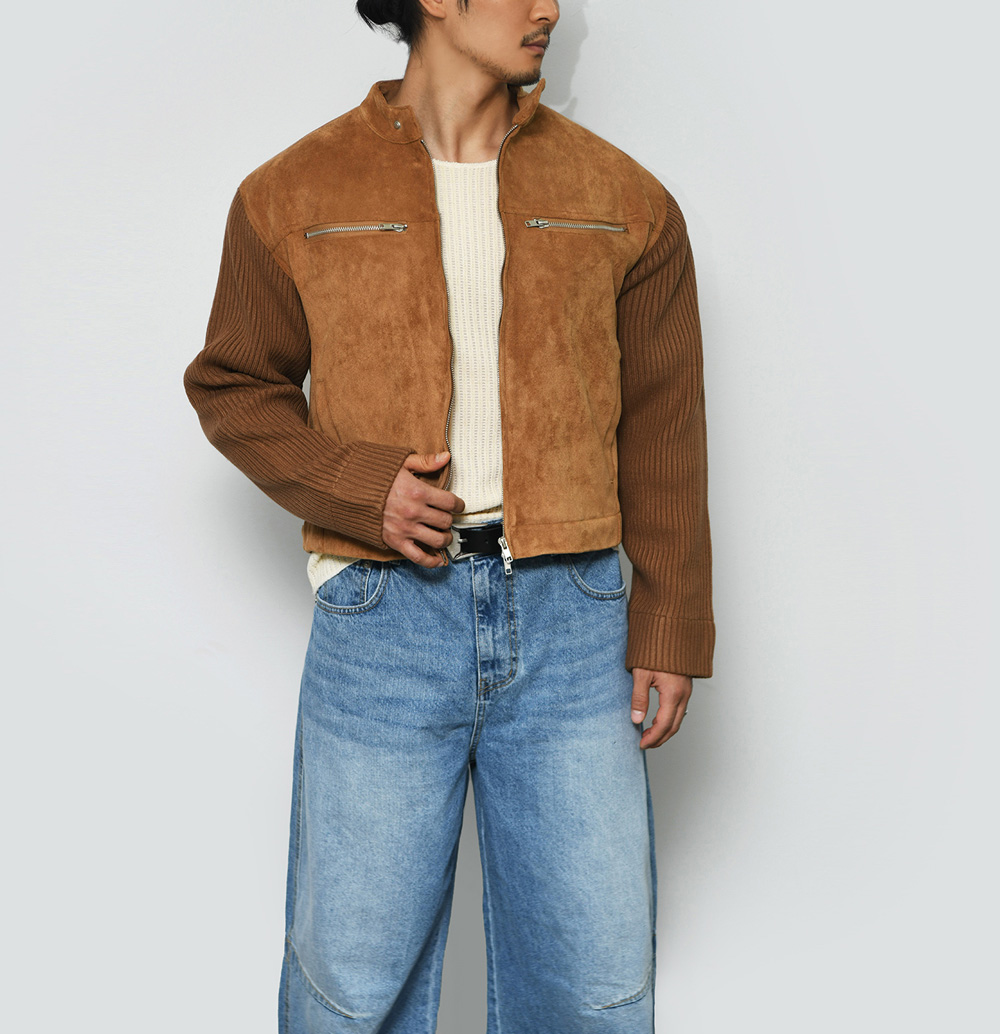Arm Knit Contrast Suede Leather 290