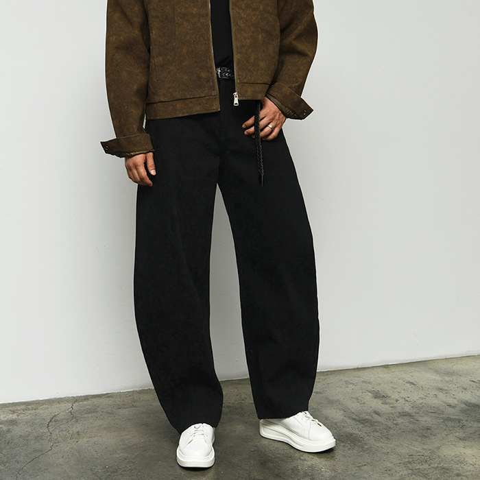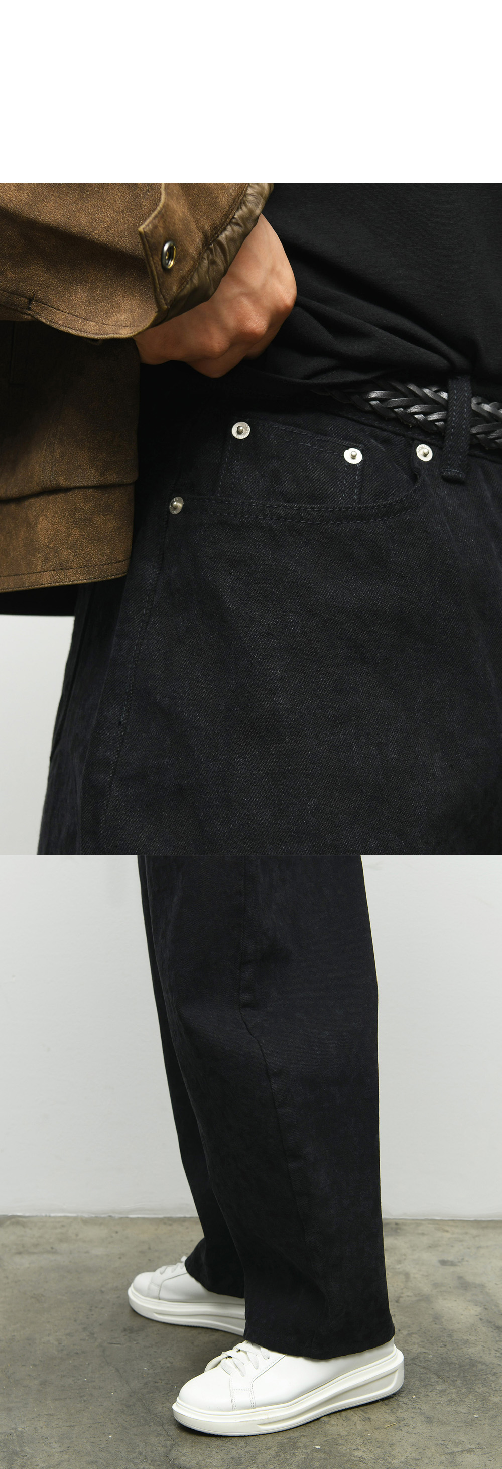 BLACK LEOPARD CURVED WIDE JEANS 937 BY GUYLOOK