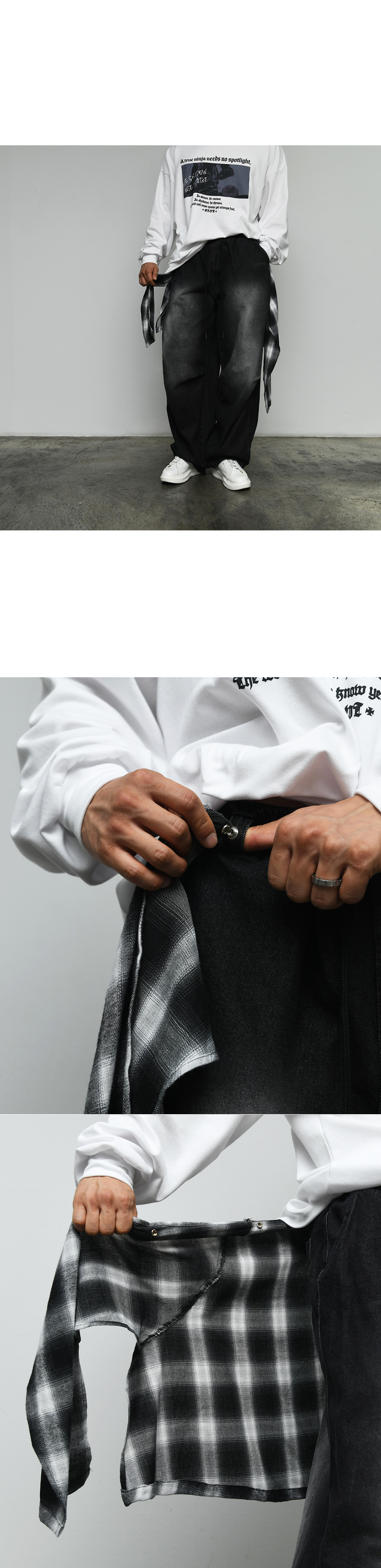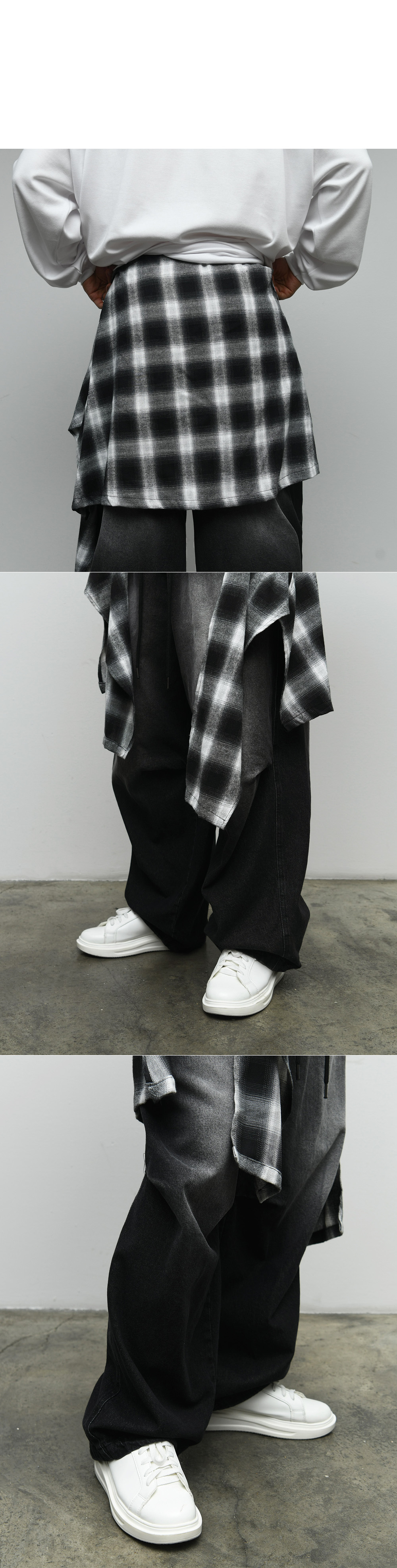 Detachable Skirt Black Wide Jeans 936
