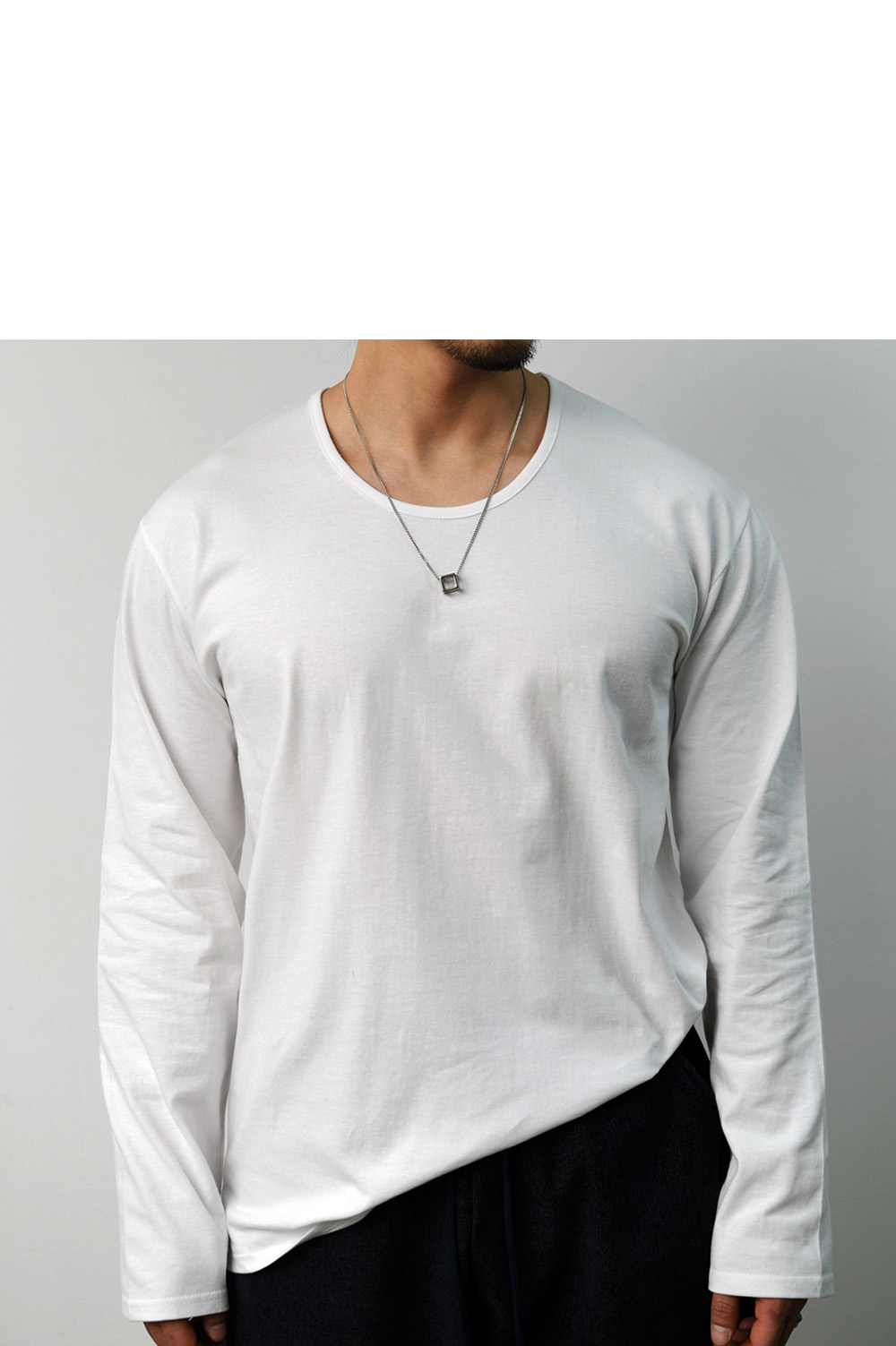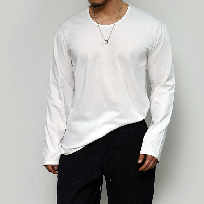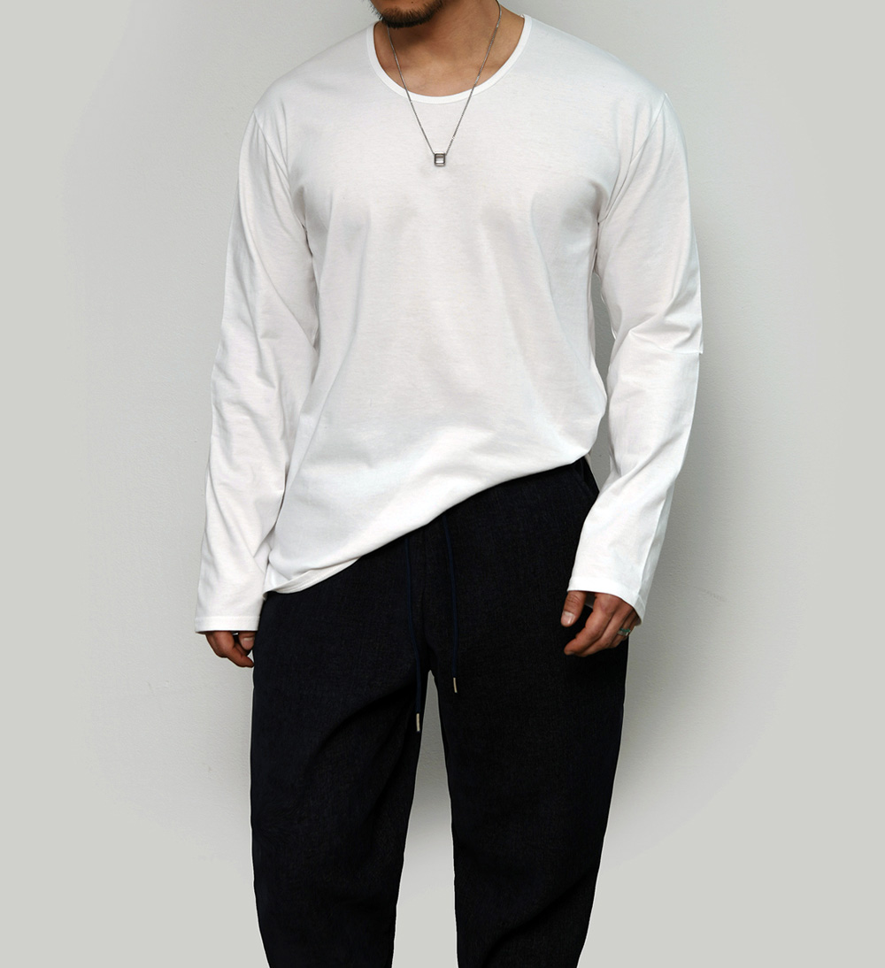 ESSENTIAL SIDE SLIT COTTON U-NECK-TEE 376 BY GUYLOOK