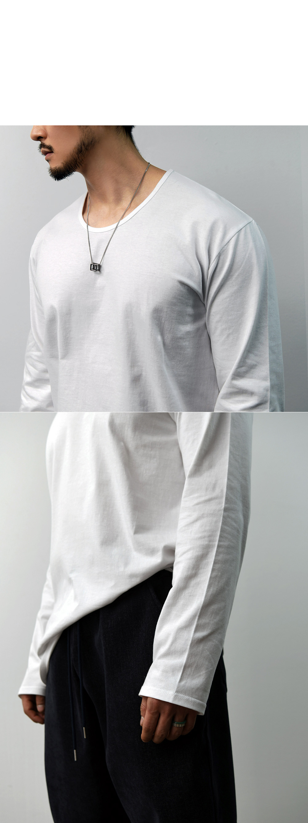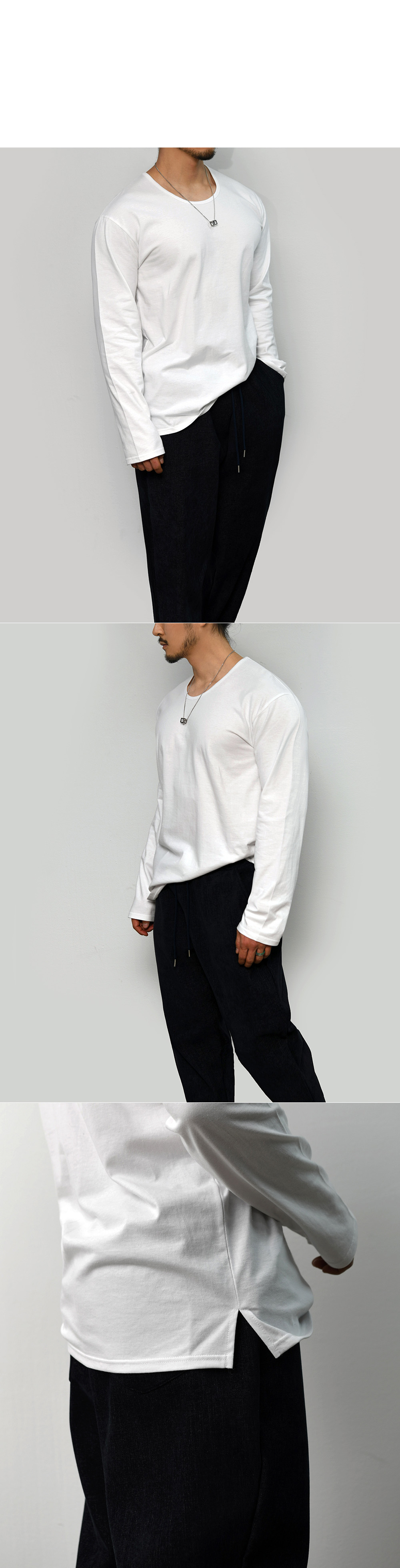 Essential Side Slit Cotton U-neck-Tee 376