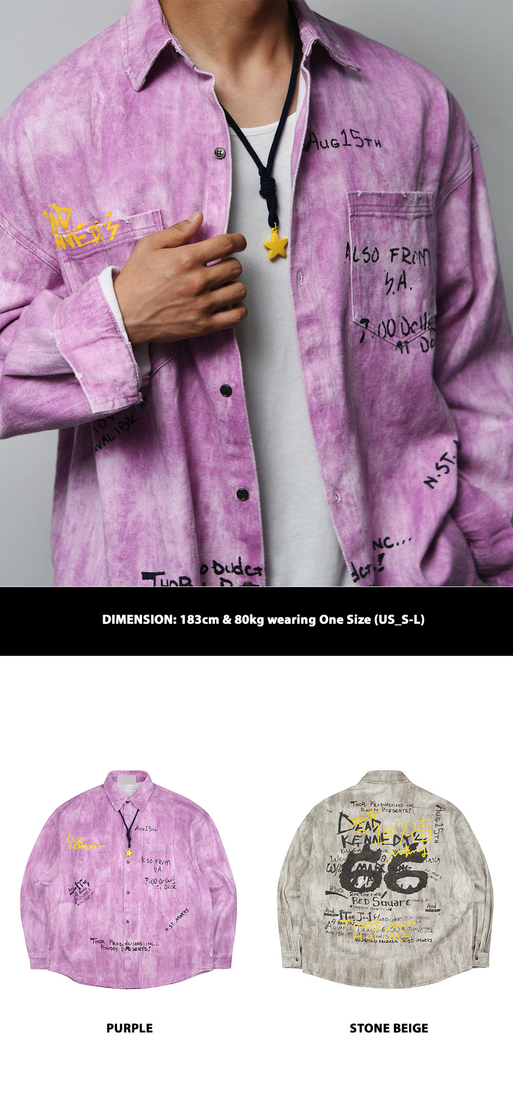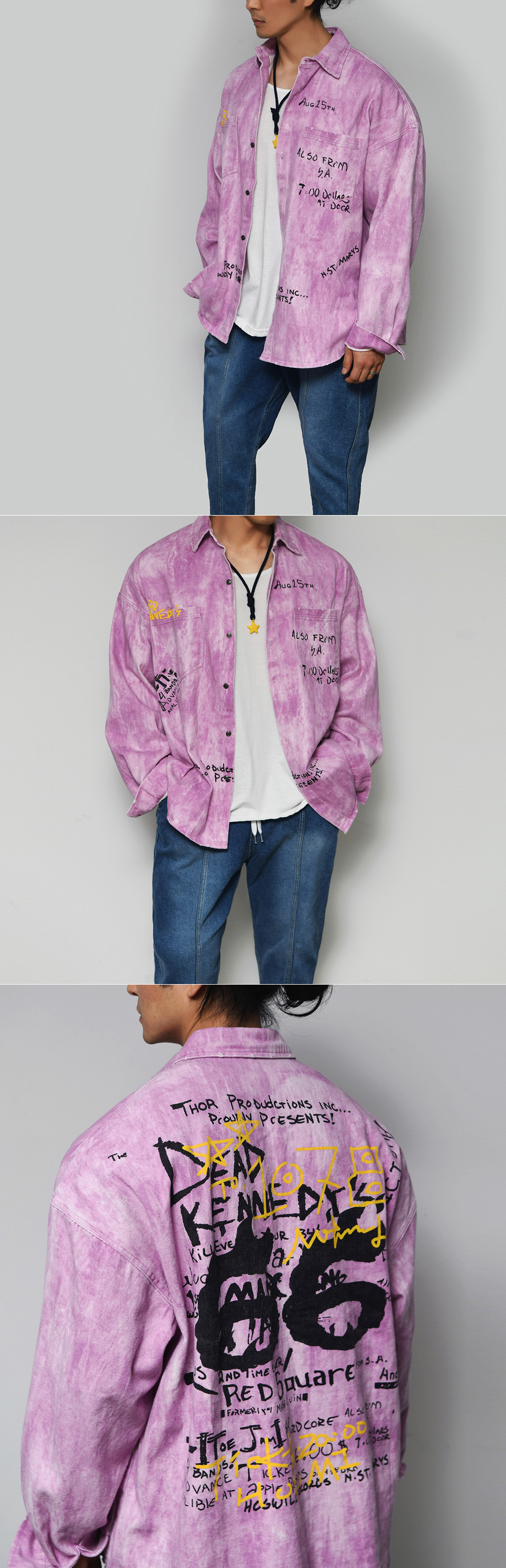 STAR NECKLACE SET LOOSE FIT PIGMENT SHIRT 828 BY GUYLOOK