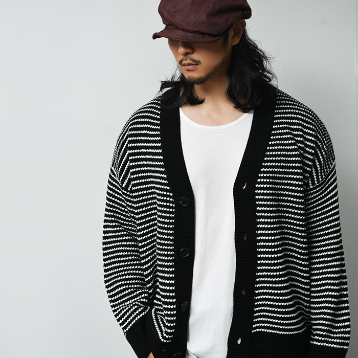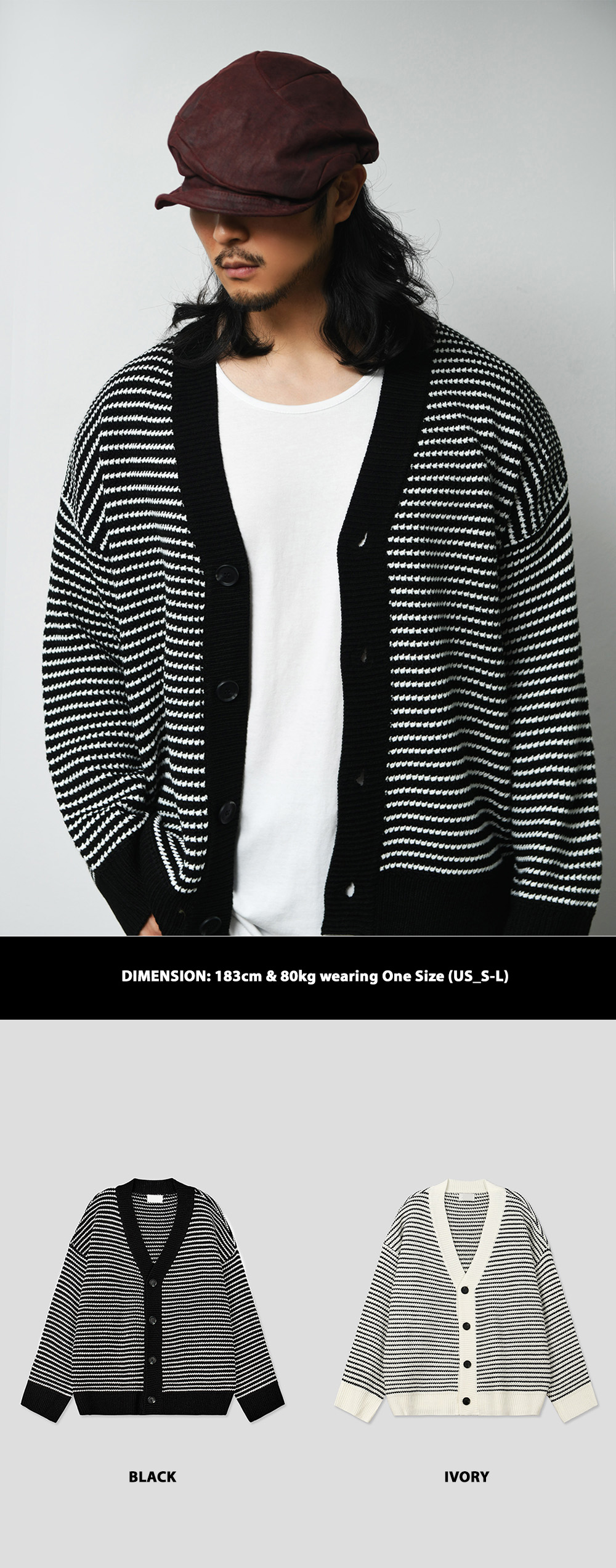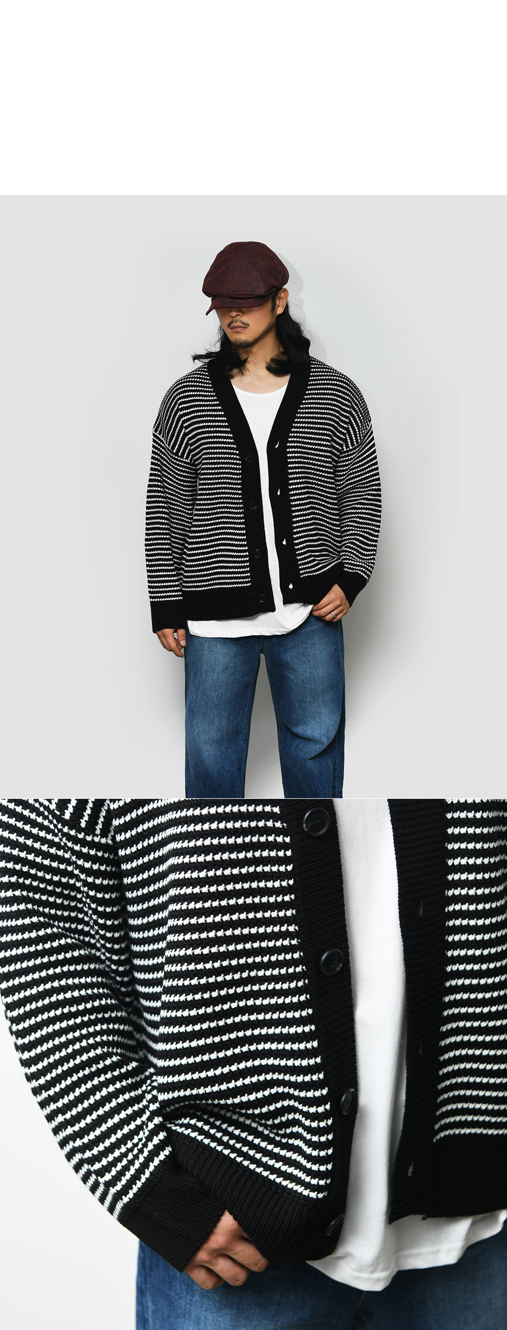 RELAX FIT STRIPE KNIT CARDIGAN 551 BY GUYLOOK