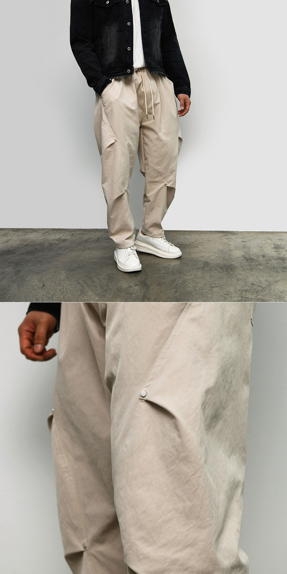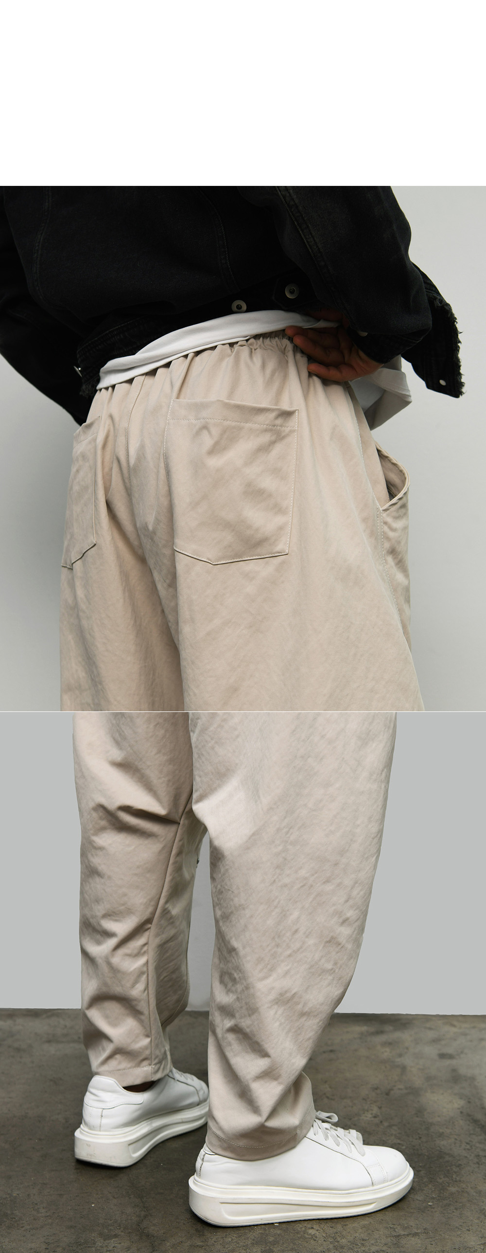 • Hip & trendy semi-baggy fit with elastic banding waist