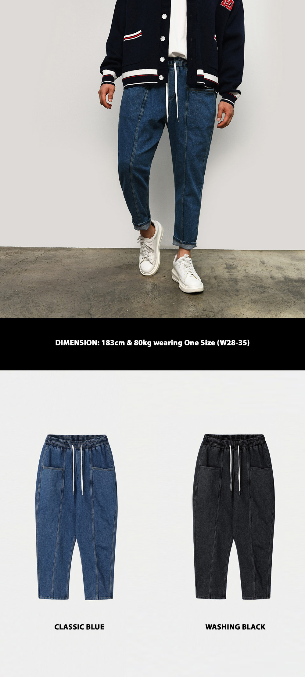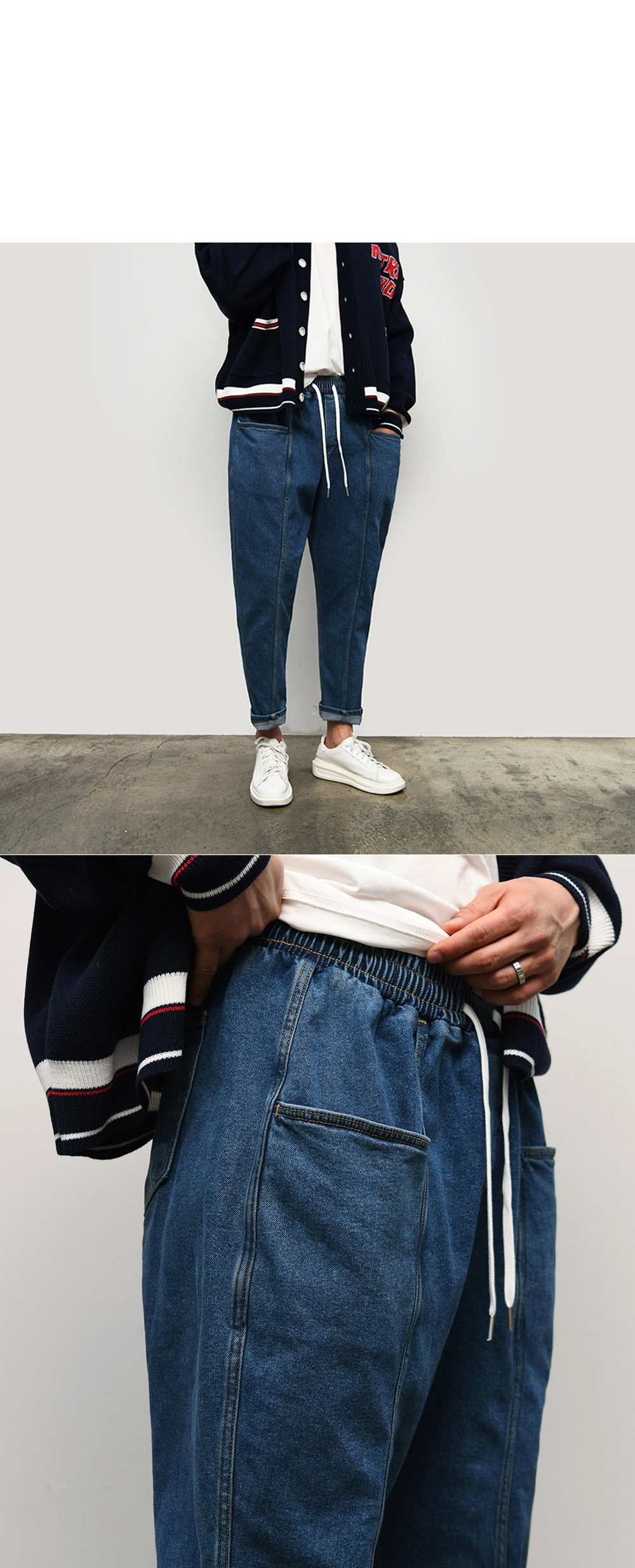 Seaming Pocket Semi-baggy Denim-Jeans 946