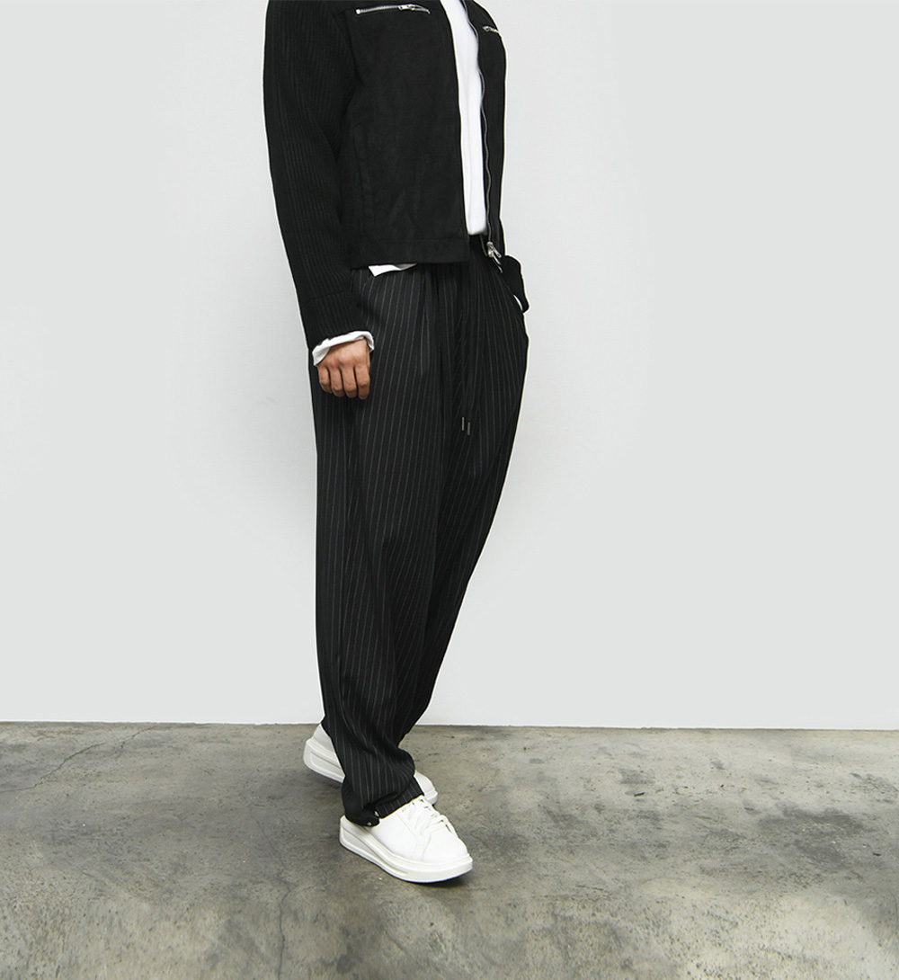 STRIPE WIDE SNAP BANDING PANTS 536 BY GUYLOOK