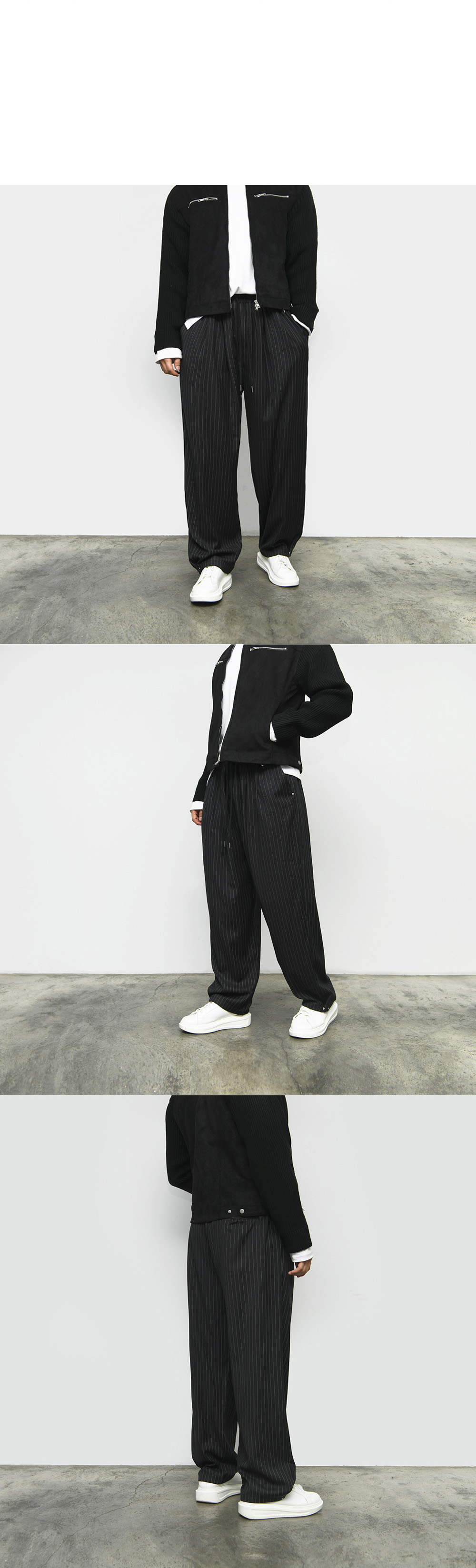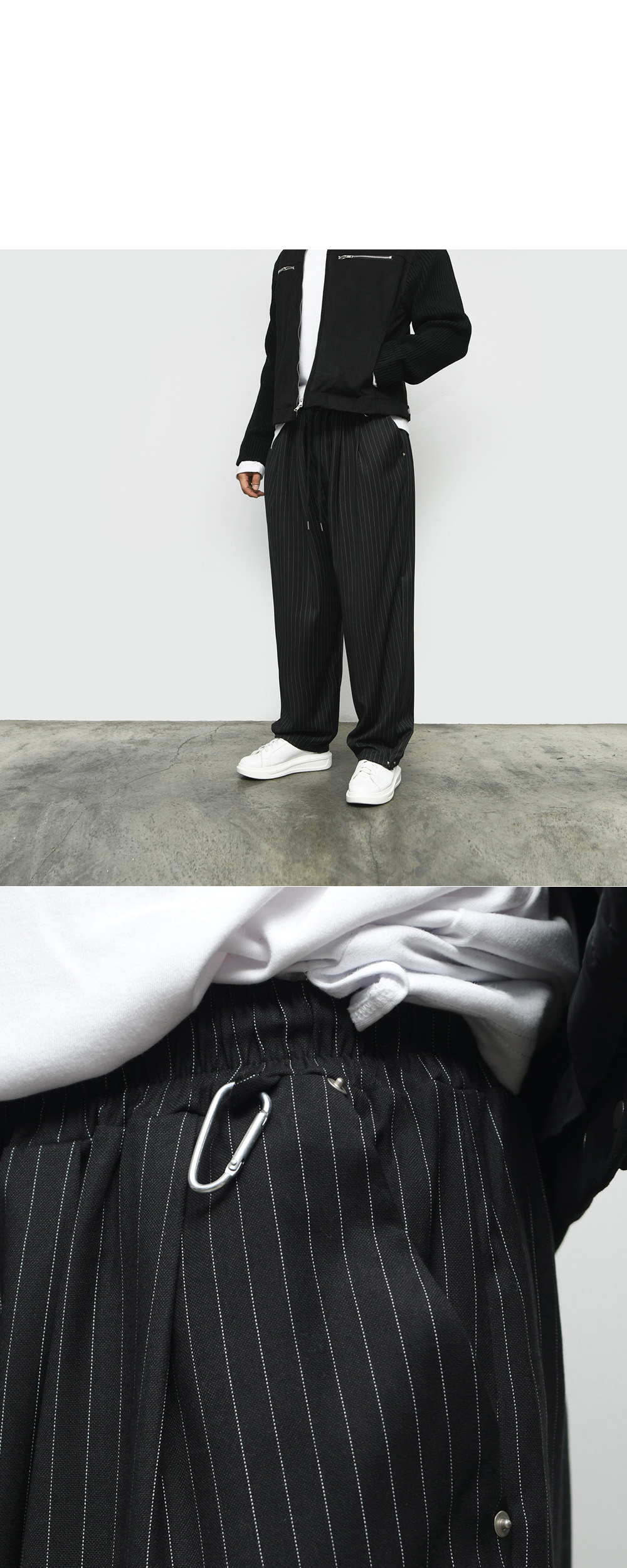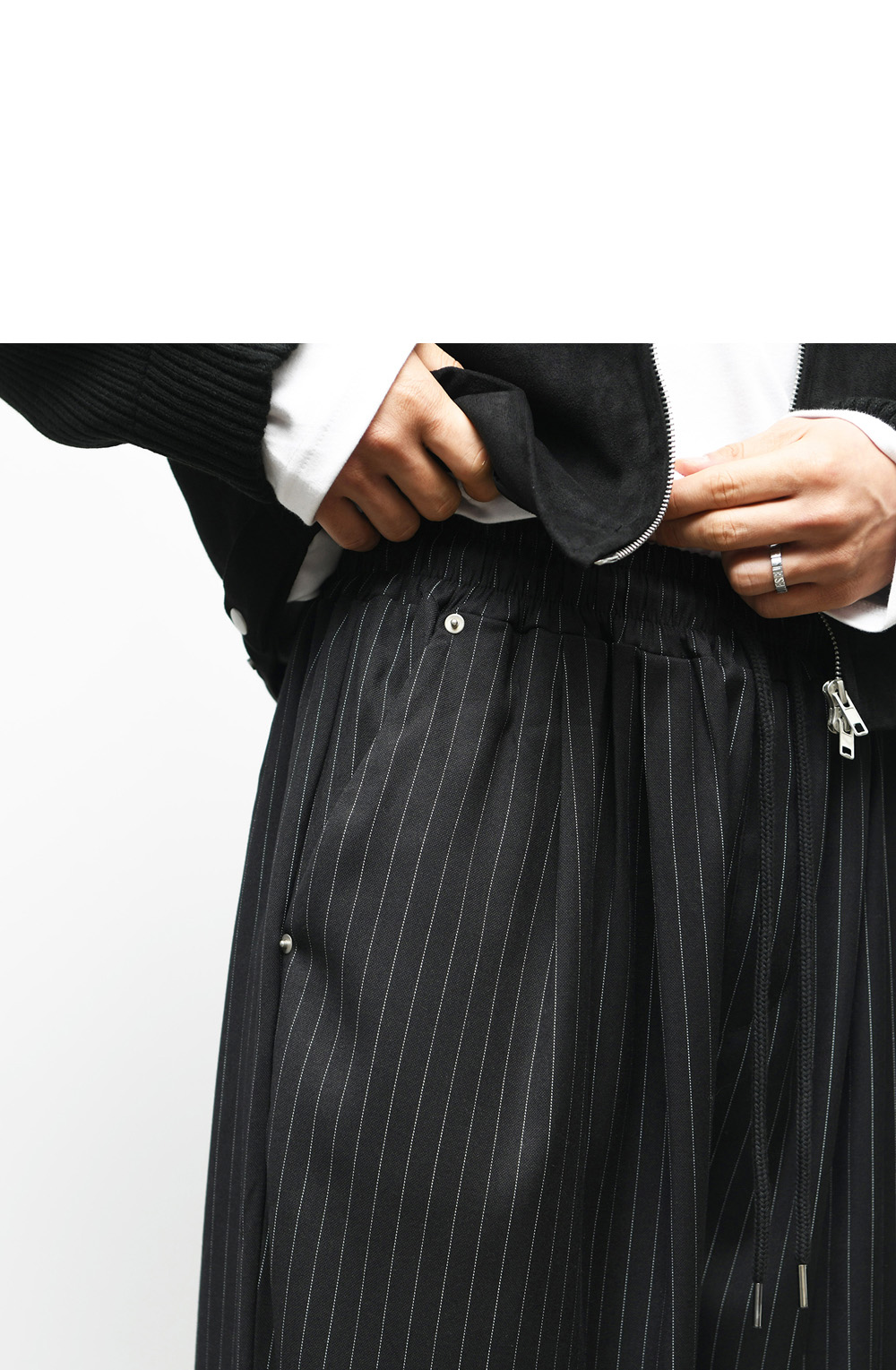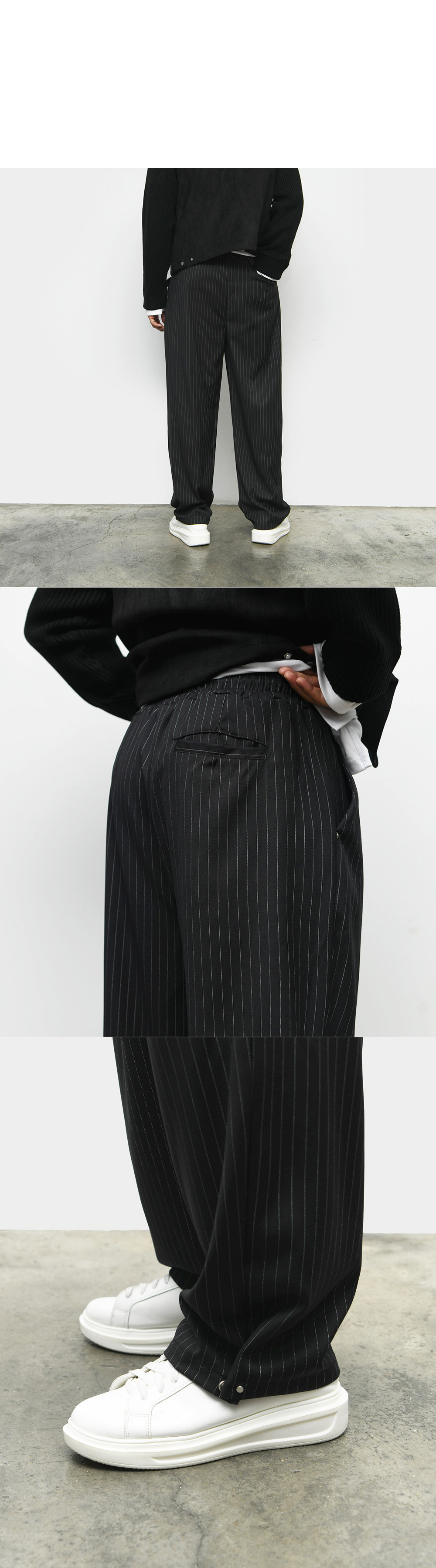 Stripe Wide Snap Banding Pants 536