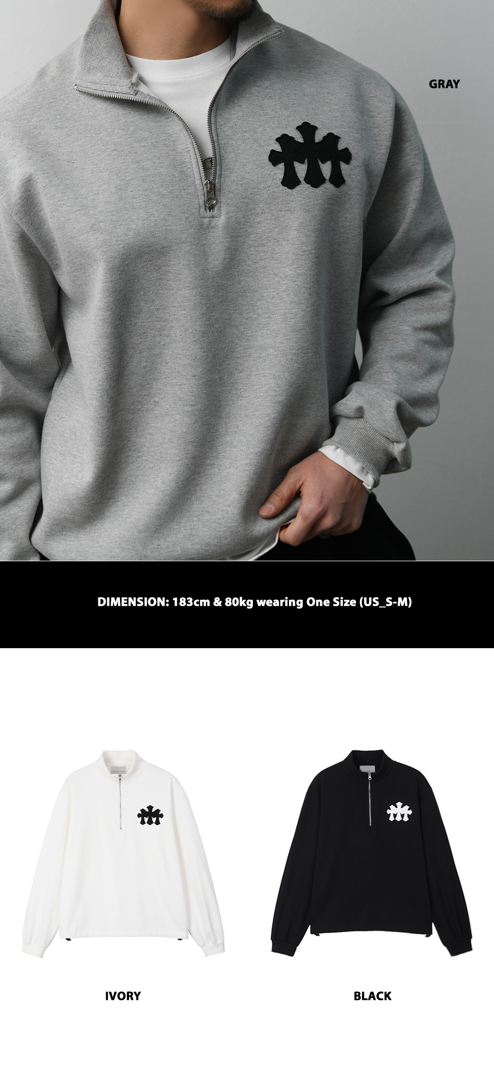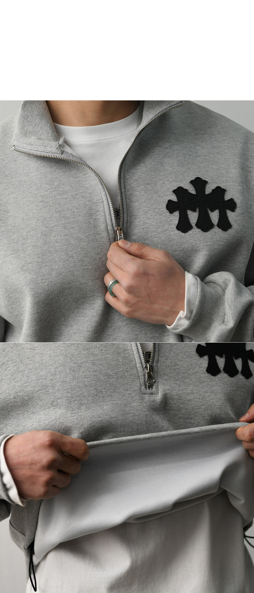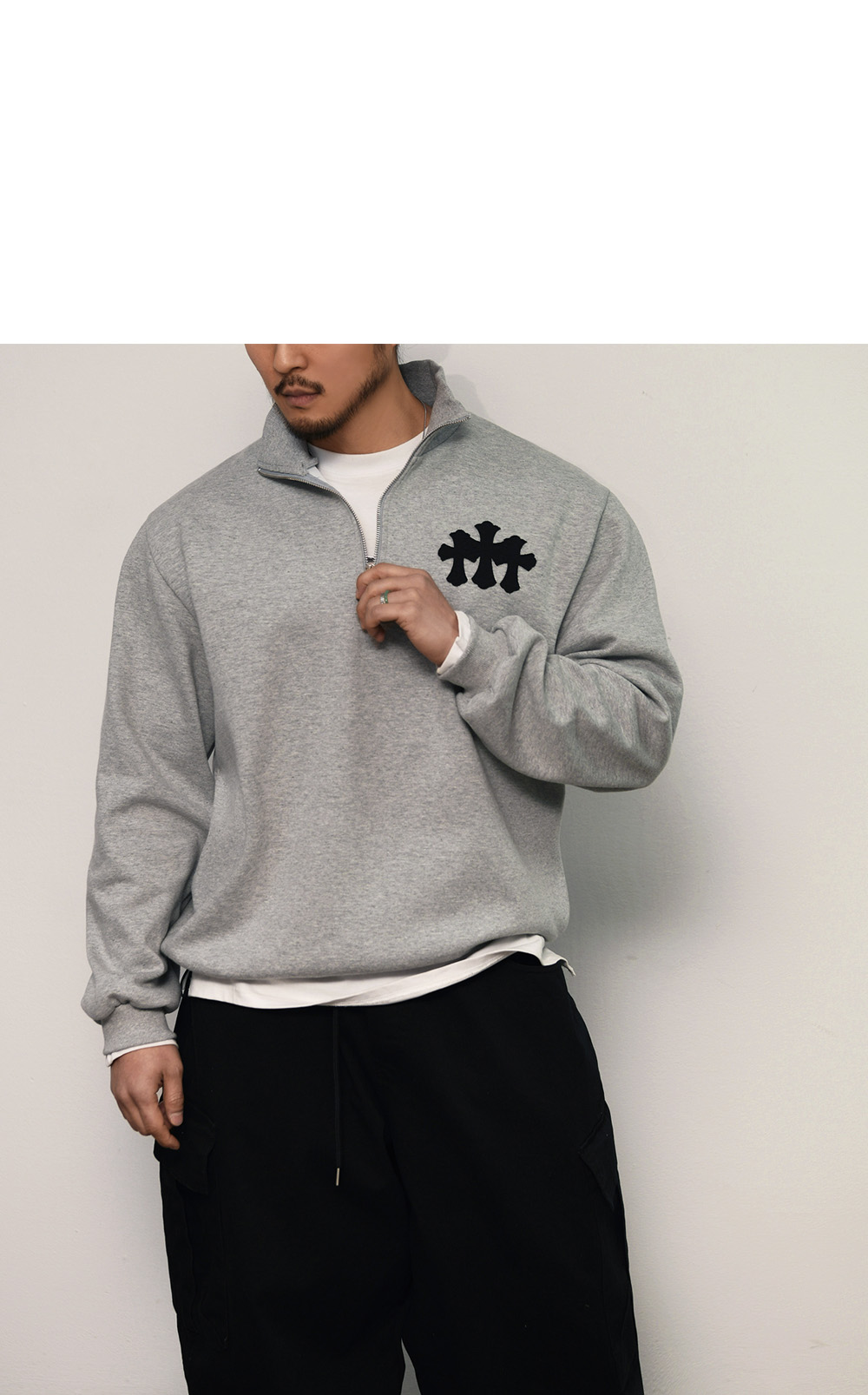 Triple Cross Half Neck Zip-up-Tee 377